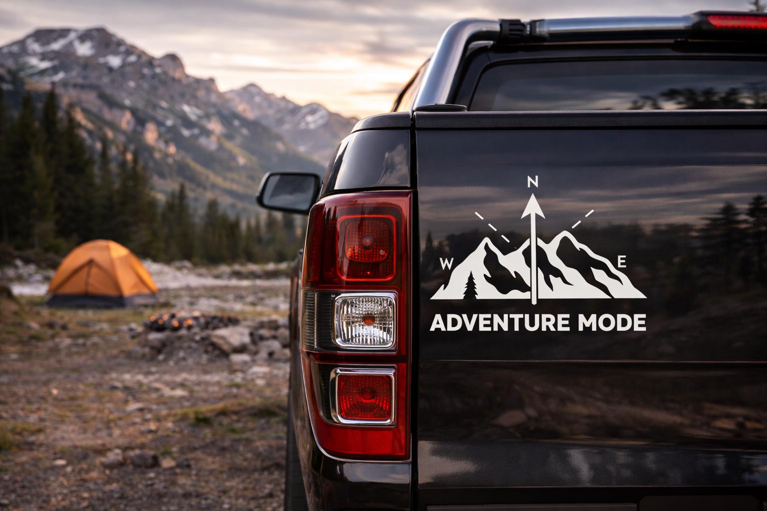 Whether you're exploring mountain roads, camping in nature, or simply love the outdoor lifestyle, this decal adds the perfect rugged adventure touch to your vehicle.